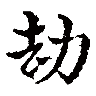 说文解字注(劫)人欲去㠯力脅止曰劫。脅猶迫也。俗作愶。古無其字。用脅而已。以力止人之去曰劫。不專謂盜。而盜禦人於國門之外亦劫也。太史公曰。劫人作姦。或曰㠯力去曰劫。用力而逃也。从力去。依韵會補此三字。二義皆力去也。此篆从力。而俗作刦、从刀。葢刀與力相淆之處固多矣。居怯切。八部。