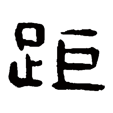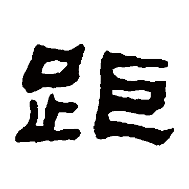 说文解字注(距)雞距也。左傳。季氏介其雞。郈氏爲之金距。服曰。以金沓距也。按鳥距如人與獸之叉。此距與止部之歫異義。他家多以距爲歫。从足。巨聲。求許切。五部。亦作作。