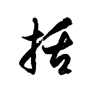 说文解字注(括)絜也。絜者、麻一耑也。引申爲絜束之絜。凡物圍度之曰絜。賈子度長絜大是也。束之亦曰絜。凡經言?髮者、皆謂束髮也。髟部曰。䯺者、絜髮也。然則束髮曰䯺。?爲凡物緫會之偁。毛詩傳曰。?、至也。其引申之義也。易?囊、借爲字也。从手。聲。古?切。十五部。