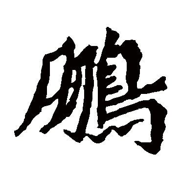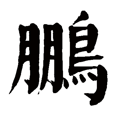 (6) 雄伟,伟大 。如:鹏力(鹏鸟的力量。喻大力);鹏起(鹏鸟飞起。比喻气势雄伟);鹏飙(飞鹏掀起的狂风。比喻伟人的盛美风彩)