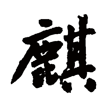 (1) (形声。从鹿,其声。《说文》:“仁兽也。”本义:传说中的一种动物,其状如鹿,独角,全身生鳞甲,尾象牛。多用作吉祥的象征。又名“麒麟”,又单称“麟”)