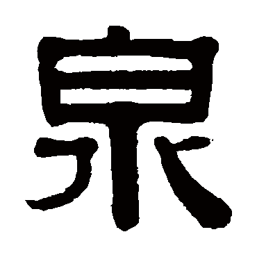 说文解字注(泉)水厡也。釋水曰。濫泉正出。正出、涌出也。沃泉縣出。縣出、下出也。氿泉穴出。穴出、仄出也。毛傳亦云。檻泉正出。側出曰氿泉。許作濫泉、?泉。召旻曰。泉之竭矣。不云自中。傳曰。泉水從中以益者也。引申之、古者謂錢曰泉布。許云。古者貨貝而寶龜。周而有泉。至秦廢貝行錢。象水流出成川形。同出而三岐。略似巛形也。疾緣切。十四部。凡泉之屬皆从泉。
