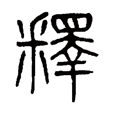 说文解字注(釋)解也。廣韵曰。捨也。解也。散也。消也。廢也。服也。按其實一解字足以包之。從釆。釆取其分別。从睪聲。考工記以澤爲釋。史記以醳爲釋。皆同聲假借也。古音在五部。音轉則廣韵在二十二昔、施隻切是也。徐鉉所引唐韵賞職切。