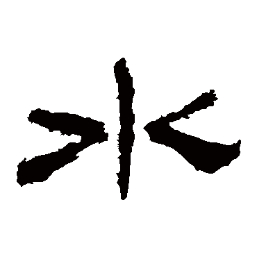 说文解字注(水)準也。準古音追上聲。此以曡韵爲訓。如戸護尾微之例。釋名曰。水、準也。準、平也。天下莫平於水。故匠人建國必水地。北方之行。月令曰。大史謁之天子曰。某日立冬。盛德在水。象衆水竝流、中有微陽之氣也。火、外陽内陰。水、外陰内陽。中畫象其陽。云微陽者、陽在内也。微猶隱也。水之文與卦略同。式軌切。十五部。凡水之屬皆从水。