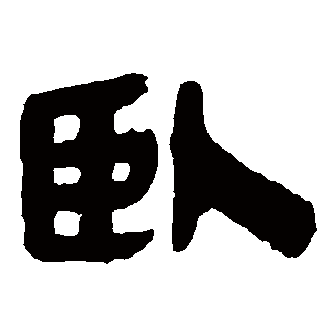 说文解字注(臥)伏也。伏大徐作休。誤。臥與寑異。寑於牀。論語寢不尸是也。臥於几。孟子隱几而臥是也。臥於几。故曰伏。尸篆下曰象臥之形是也。此析言之耳。統言之則不別。故宀部曰寑者臥也。曲禮云。寢毋伏。則謂寢於牀者毋得俯伏也。引伸爲凡休息之偁。从人臣。取其伏也。臣下曰。象屈服之形。故以人臣會意。吾貨切。十七部。凡臥之屬皆从臥。