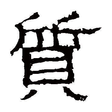 说文解字注(質)㠯物相贅。質贅雙聲。以物相贅、如春秋交質子是也。引伸其義爲樸也、地也。如有質有文是。小雅毛傳云旳質也、周禮射則充椹質、左傳策名委質、皆是。又緜詩、抑詩傳曰。質、成也。禮謂平明爲質明。从貝。从斦。闕。闕者、闕從斦之說也。䪨會從斦作斦聲。無闕字。之日切。十二部。