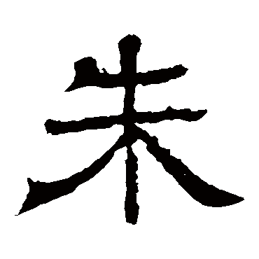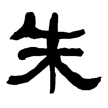 说文解字注(朱)赤心木。松柏屬。朱本木名。引伸假借爲純赤之字。糸部曰。絑、純赤也。是其本字也。從木。一在其中。赤心不可像。故以一識之。若本末非不可像者。於此知今本之非也。章俱切。古音在四部。又按此字解云赤心木。松柏屬。當廁於松樠檜樅柏之処。今本失其舊次。本柢根株末五文一貫。不當中骾以他物。葢淺人類居之。以傅會其一在上、一在中、一在下之說耳。