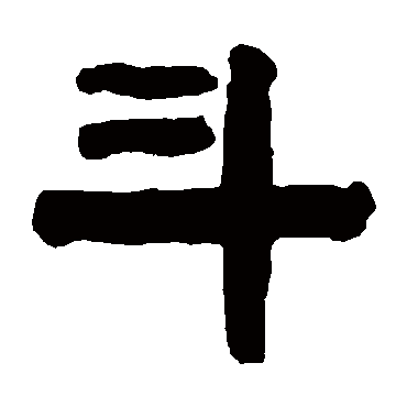 说文解字注(斗)十升也。賈昌朝作升十之也。此篆叚借爲斗陗之斗。因斗形方直也。俗乃製徒字。象形。有柄。上象斗形。下象其柄也。斗有柄者、葢象北斗。當口切。四部。許說俗字人持十爲斗。魏晉以後作升。似升非升。似斤非斤。所謂人持十也。凡斗之屬皆从斗。