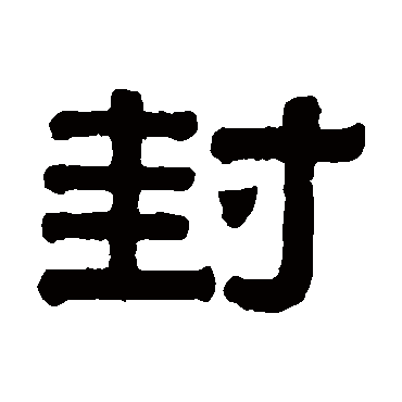 (1) (会意。金文字形,左边象土上长着丰茂的树木形,右边是一只手(又,后来写作“寸”),表示聚土培植。《说文》:“封,爵诸侯之土也。从之从土从寸。” 郭沫若曰:“古之畿封实以树为之也。此习于今犹存。然其事之起,乃远在太古。太古之民多利用自然林木以为族与族间之畛域,西方学者所称为境界林者是也。”。 李孝定曰:“封之本义当以 郭说为是, 许训乃后起之义。字象植树土上,以明经界。爵诸侯必有封疆,乃其引申义。”本义:疆界;田界)